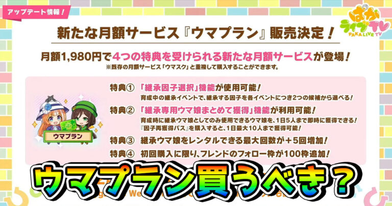 【ウマ娘】新サブスク「ウマプラン」は買うべき? 入ることのメリットや、どういう人向けかを解説!