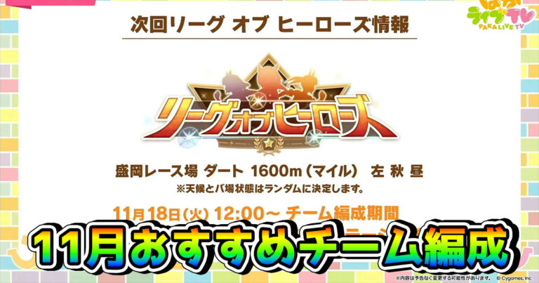 こんにちは、ルネ(@renekuroi)です。 今回のテーマは「11月リーグオブヒーローズは結局どのキャラ、どの編成がおすすめなのか? 推奨ウマ娘と共に解説!」です。 というわけで、リーグオブヒーローズの開催まであと2週間となったので、まず今回採用 […]
