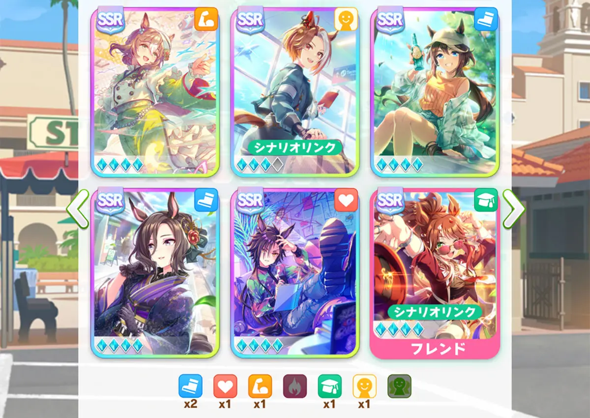 SSRカジノドライヴ(友人)の「お出かけ」については、練習が弱いときの下振れ回避や体力回復で使いましょう。