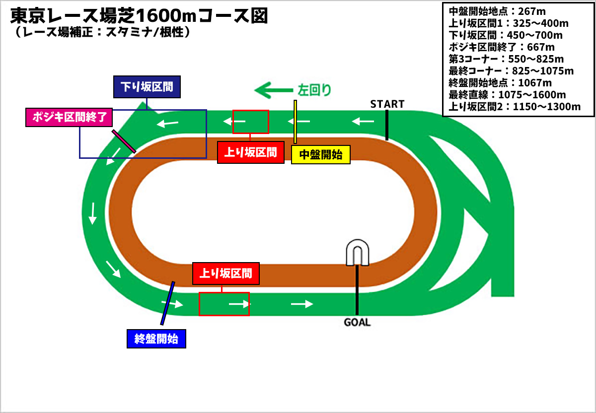 - 最終直線が長いコースのほうが追い比べ発生区間が長く、根性に寄せたステータス振りや後方脚質が強い傾向