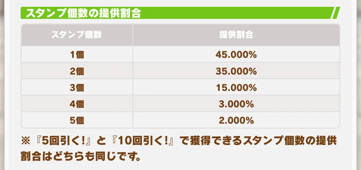何か前回と変わった点はないか確認したのですが、仕様的には前回のスタンプシートガチャと同様でした。要点は以下となります。