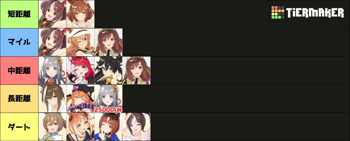 ★3セレクトステップアップガチャも同時に開催中で、こちらは非常にお得なガチャなので回すのがおすすめ。距離別のおすすめキャラは↑みたいな感じですね。