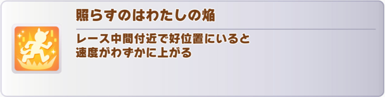 発動条件:レース中盤後半のランダムな地点で、順位が上位50%以内(チャンミ:1~5位)(LoH:1~6位)<中距離>