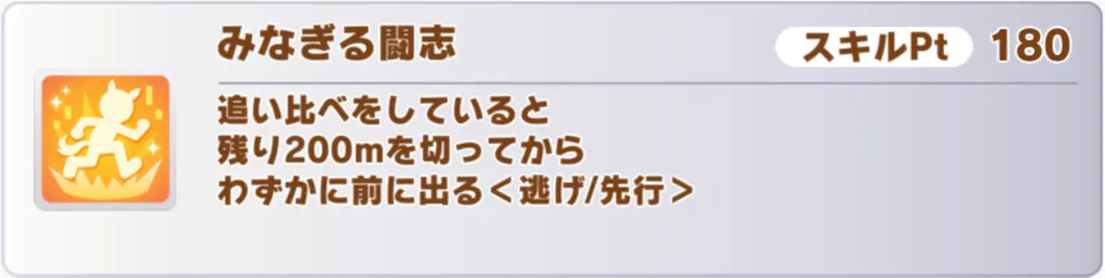 発動条件:追い比べをすると、残り200mで発動<逃げ/先行>