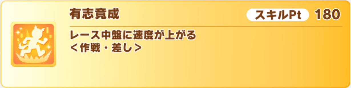 2個目は差し専用の中盤速度スキル「有志竟成」です。