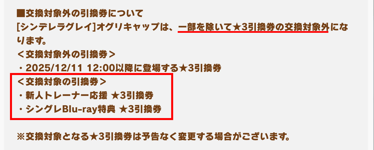 ちょっとだけ違うのは、シングレBlu-ray特典の★3引換券で交換可能という点ですね。、この★3引換券は、アニメ「ウマ娘 シンデレラグレイ」のBlu-rayを1~7巻まで購入すると手に入ります。1~4巻だけだとSSR引換券になるで注意。