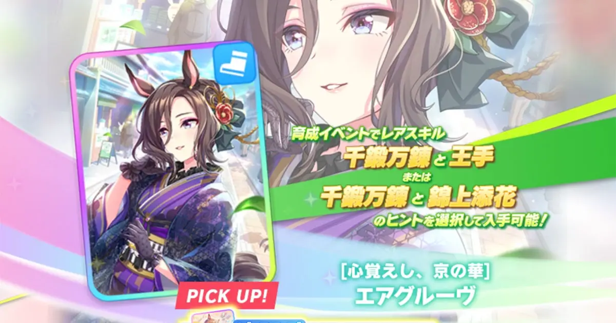さて、今回のSSRエアグルーヴ(スピード)の評価ですが、「脚質を問わず、中距離全般で使える最上位級のスピサポ。すぐに完凸を用意しなくてもいいが、やる気がある人は5周年の引換券などを用いて、3月の中距離チャンミまでに完凸を目指したい」です。