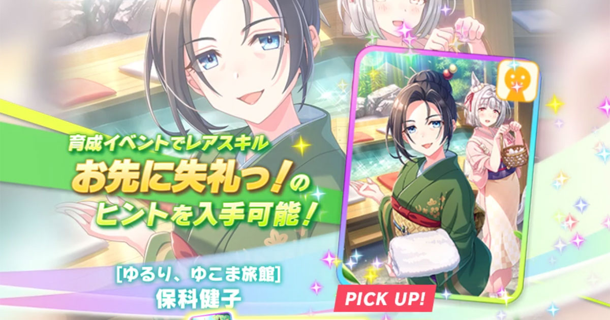 さて、今回のSSR保科健子(友人)の評価ですが、「温泉郷シナリオでは絶対に必要な“入場券”だが、無凸運用で基本OK。性能解放はテイオーのほうを圧倒的に優先すべき」です。