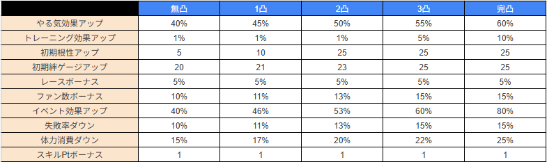 各種ボーナスや習得スキル/育成イベント
