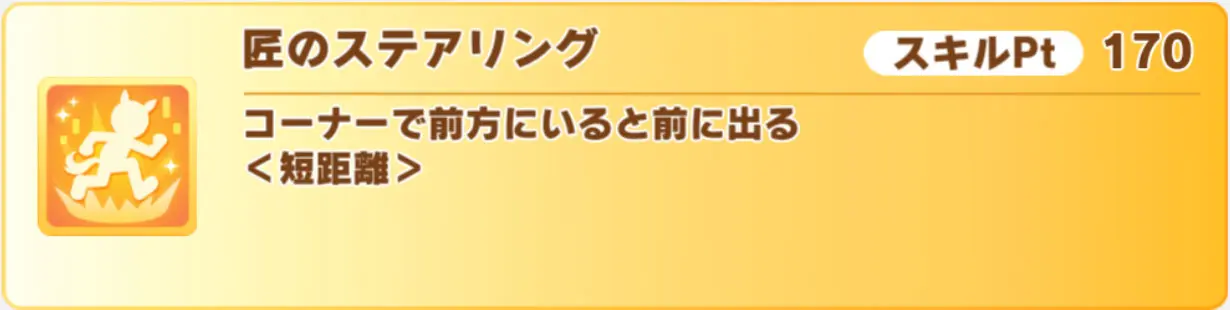 金スキルは2種を一度に獲得できるタイプ。1個目は短距離専用の現在速度スキル「匠のステアリング」です。