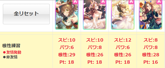 Dreamsシナリオにおける上位サポートとの友情トレーニング比較表