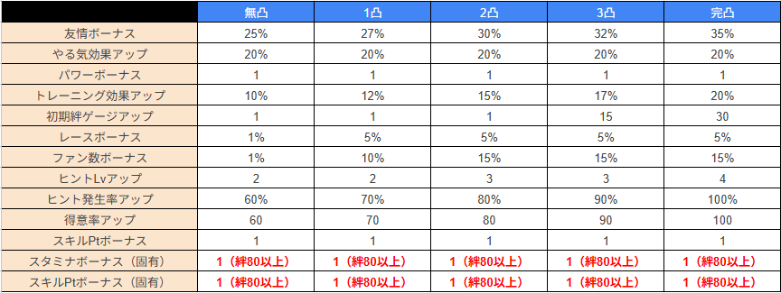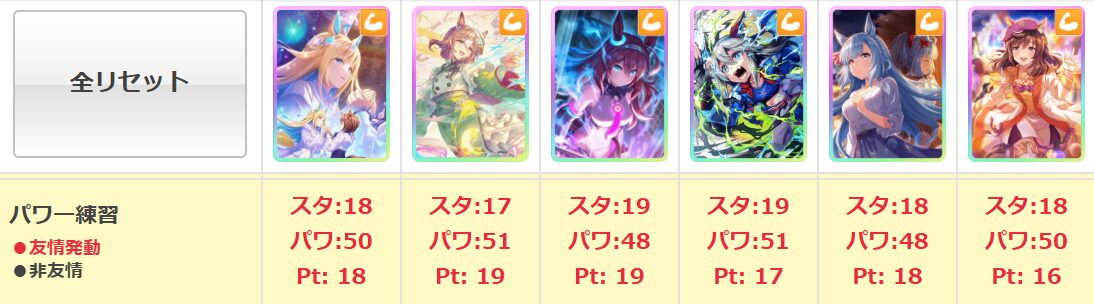 SSRネオユニヴァース(パワー)の友情トレーニングに関する上位サポートとの比較表は、以上のとおり。