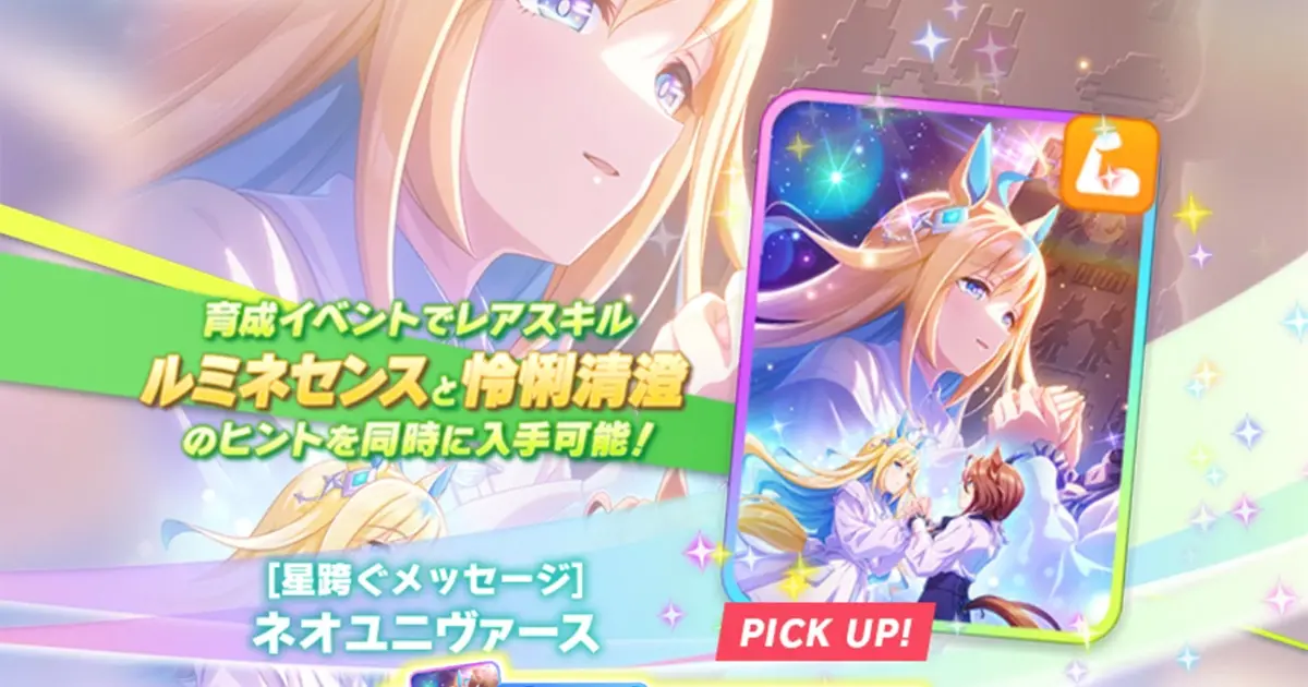 さて、今回のSSRネオユニヴァース(パワー)の評価ですが、「中距離特化のパワサポで、総合力はかなり高い。ただ、チャンミプラチナを取るのに必須まではいかないので、どちらかというとガチ勢向けか」です。