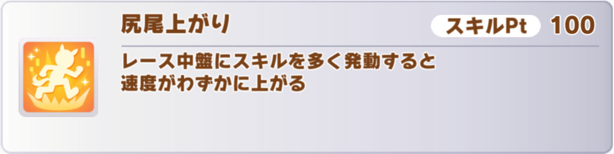 汎用スキルでは「尻尾上がり」「シンパシー」「快速」などを取れます。