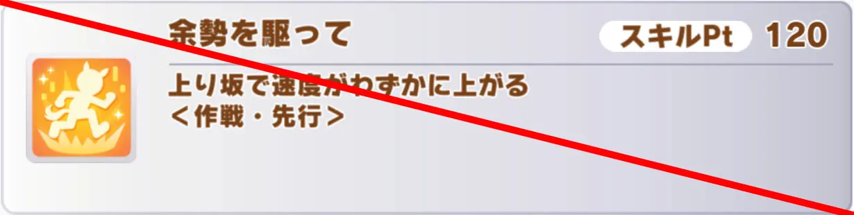 そのため、「余勢を駆って」「十万バリキ」「登竜門」などの坂スキルは発動しません。要注意。
