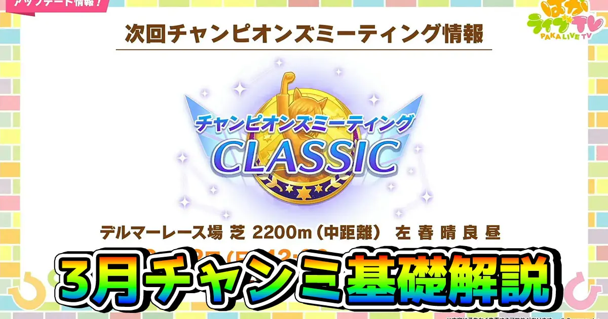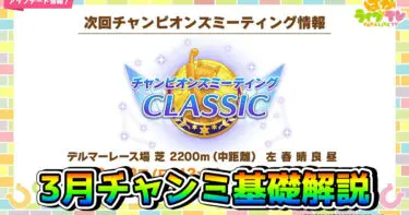 今回のテーマは「3月チャンミCLASSIC・デルマー芝2200m攻略。終盤加速などの基礎知識とおすすめウマ娘を解説!」です。