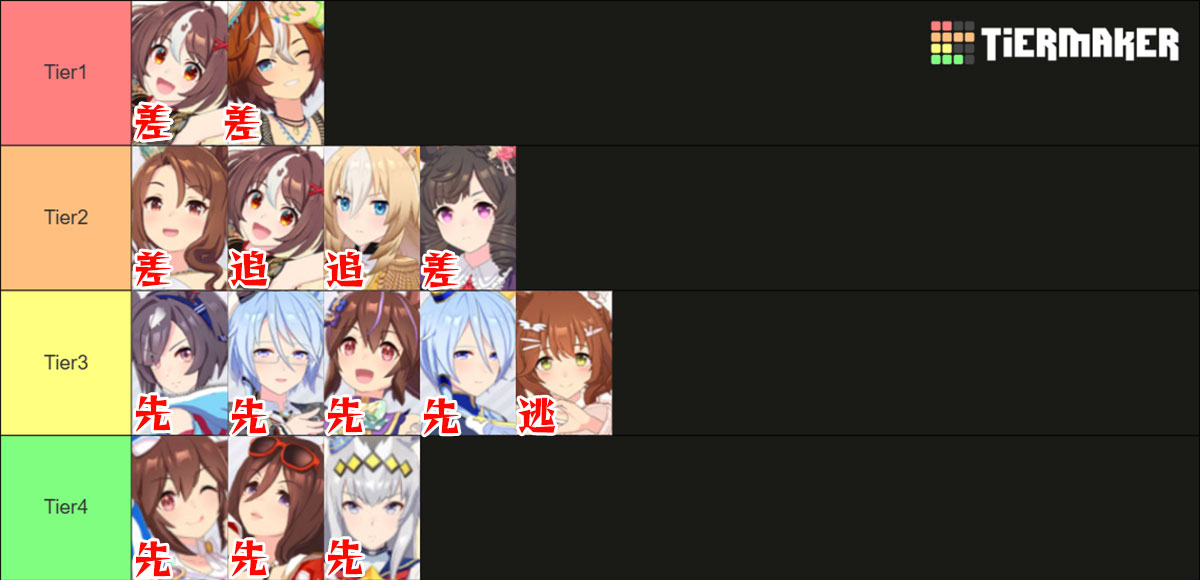追込は差しよりはサポカパワーが劣る上に要求値が高いんですが、ちゃんと仕上げれば強い。