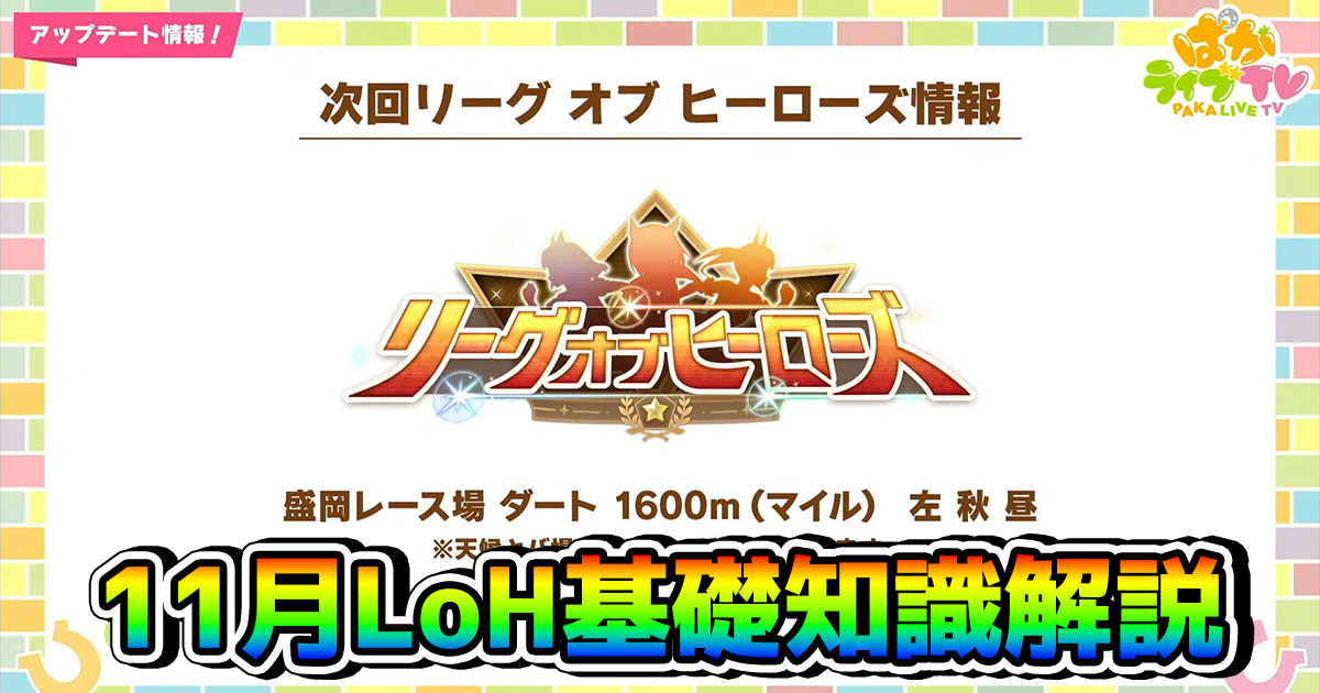 今回のテーマは「11月リーグオブヒーローズは盛岡ダート1600m! コースの基礎知識と有力ウマ娘を解説!」です。