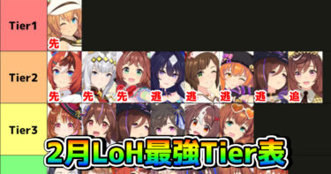 こんにちは、ルネ(@renekuroi)です。 今回のテーマは「2月リーグオブヒーローズ(東京芝1600m)・おすすめ先行ウマ娘と育成論」です。 というわけで、2月LoHの脚質別育成論は、最有力候[…]