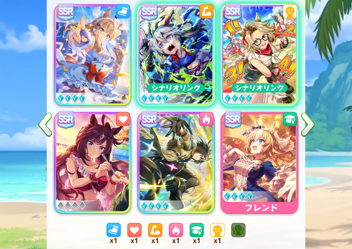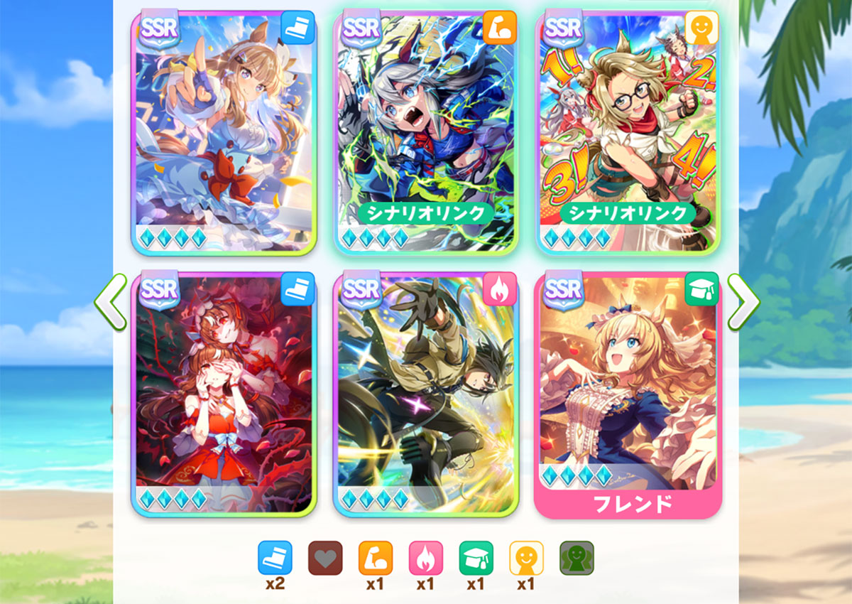 スピードサポートは、特にSSRアーモンドアイ(スピード)、SSRシーキングザパール(スピード)あたりを採用したいですね。この辺はスキルPtボーナス2なのが大きい。