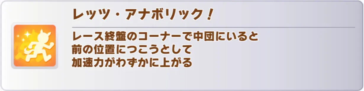 短距離コーナー◎/○ | 捕捉 | 全身全霊(末脚) |