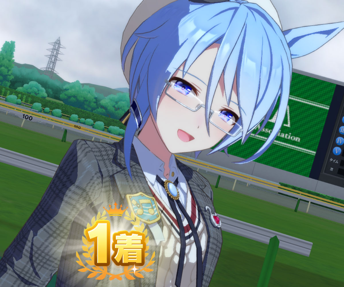 この前出たばかりのヒシアケボノ(サーカス)も先行の中では有力候補でしょうか。このキャラは自前で「鍔迫り合い」の進化を持っているのが大きく、加速面でほかのキャラに対して優位です。金スキル「まばたき厳禁!」が現状サポートから外付けできない点も強み。
