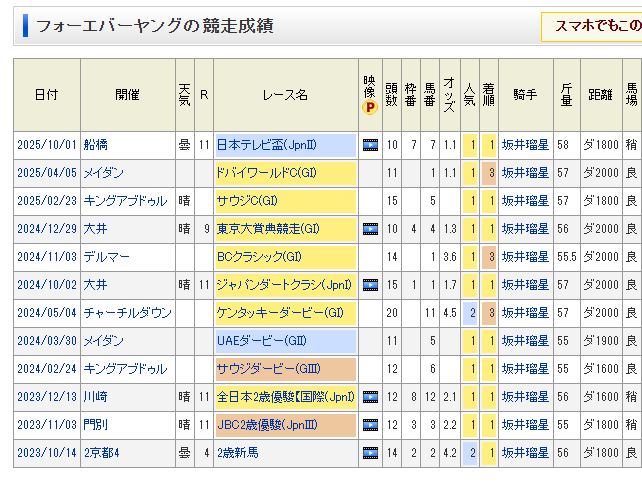 特に、サウジカップの1位は日本馬の宿敵ともいえるロマンチックウォリアーを下しての勝利となるんですが、今回のBCクラシック1位でさらなる偉業を残した形になりますね。名実ともに世界最強ダート馬と言える内容。