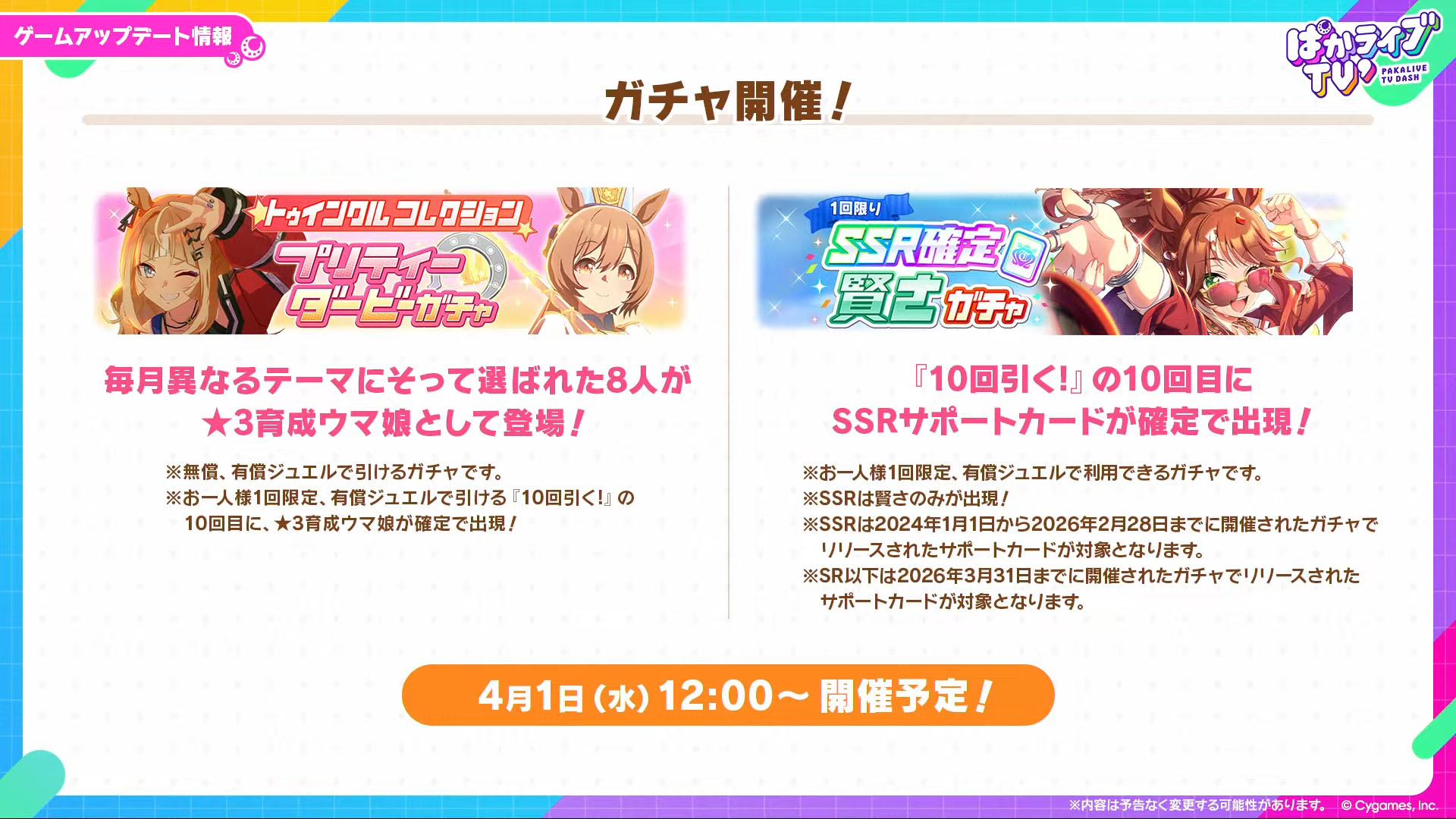 今回のテーマは「公式生放送『ぱかライブTV’ #1』ゲーム内最新情報まとめ」です。