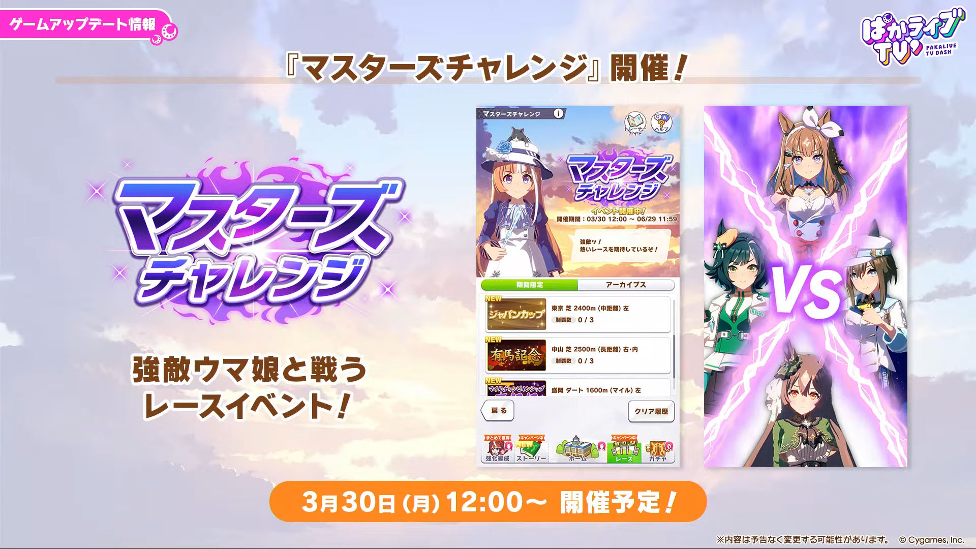 マスターズチャレンジ更新! アーモンドアイなどが登場