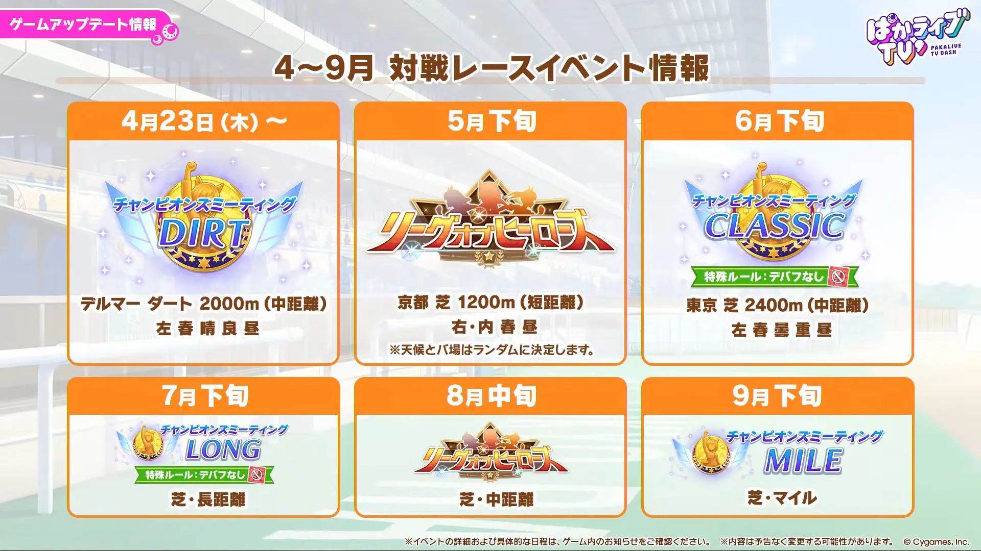 9月までの対戦レースイベント情報が一挙発表に!!