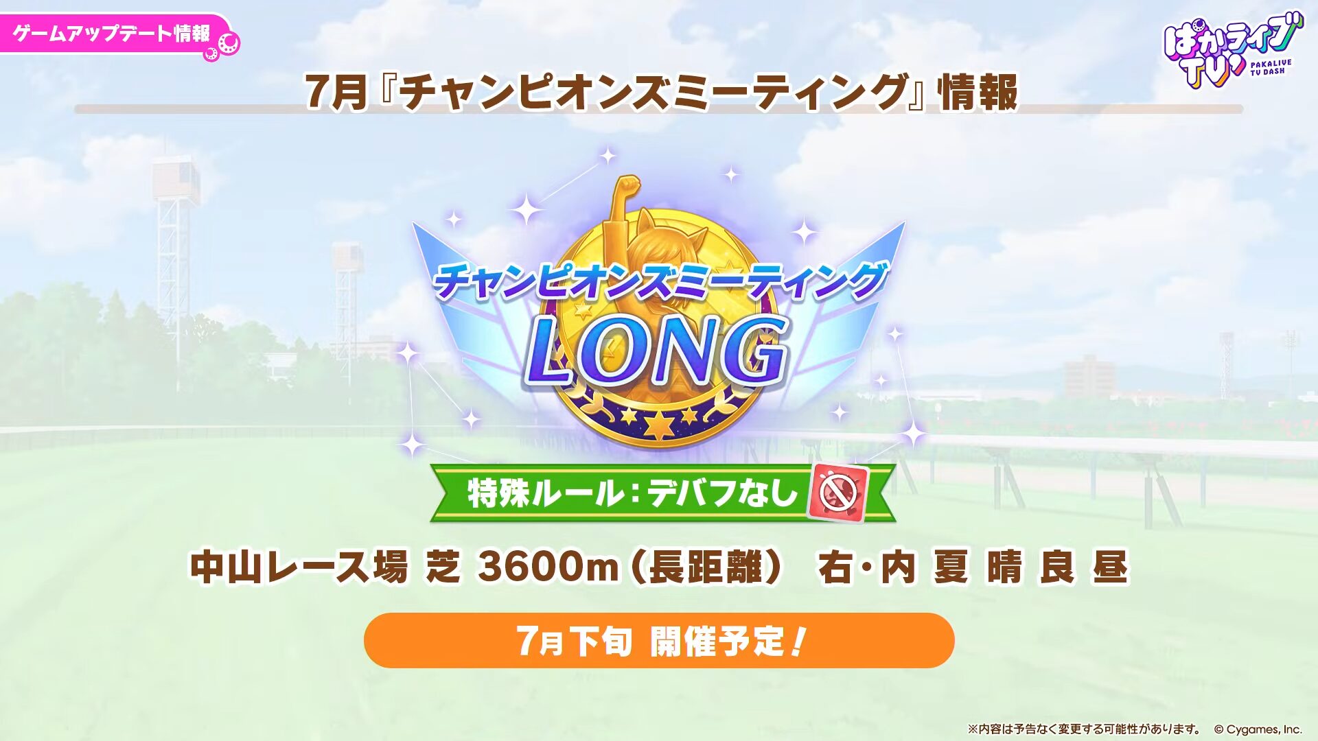 7月チャンミLONGはデバフなし&中山芝3600mで開催!